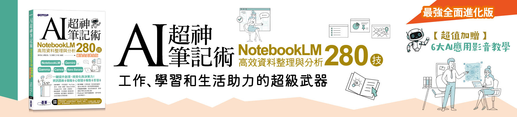 AI 超神筆記術:NotebookLM 高效資料整理與分析 280技 (最強全面進化版) (附範例素材/提示詞/6大影音教學)$490$387 -